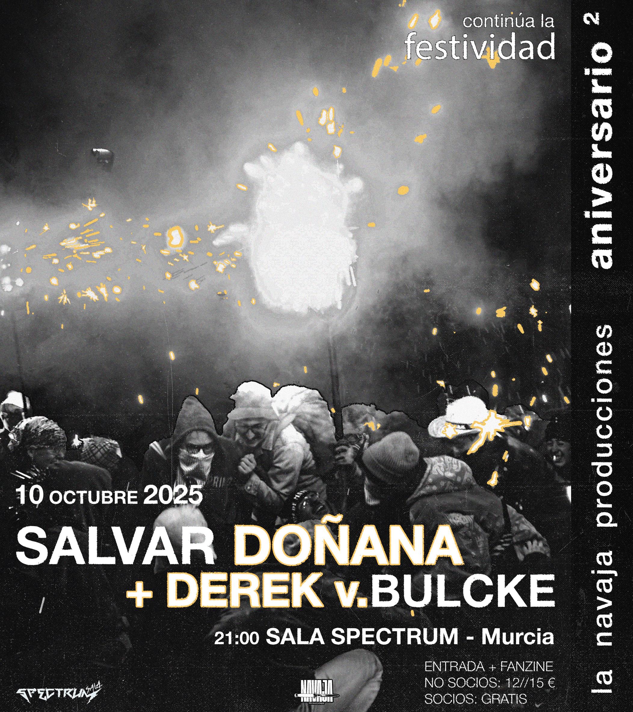 La Navaja Producciones celebramos nuestro segundo año de vida con un evento especial que reunirá a Salvar Doñana y Derek v.Bulcke en la sala Spectrum de Murcia el 10 de octubre.