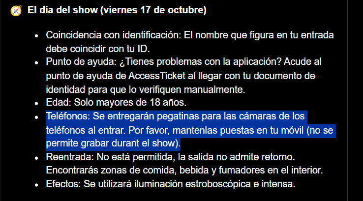 Esto no va en plan purista berlinés. No pretendo abogar por la requisa de los móviles en aras de crear un espacio de desinhibición extrema. Creo (o creía) que todos somos mayorcitos como para saber cuándo no grabar si es el mismo artista quien lo está pidiendo. Pero parece que hemos llegado a un punto en el que, para respetar la voluntad del artista, igual vamos a tener que dejar los teléfonos en taquillas antes de entrar, o imponer el uso de fundas magnéticas como hizo Bob Dylan.
