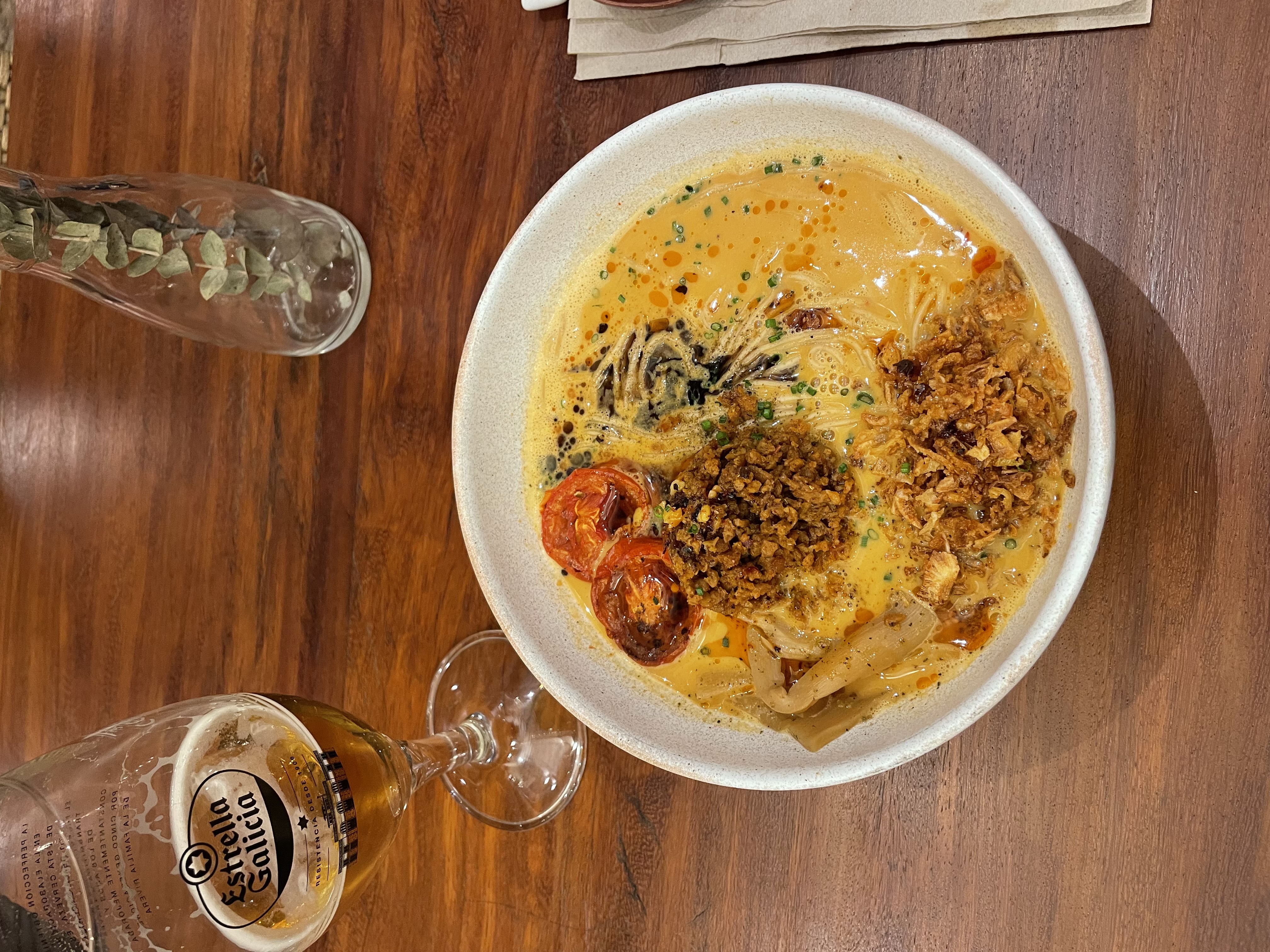 Olvídate de la sopa, esto no va de sopa. Lo que he descubierto en 2025 es una religión grasa y caliente. El ramen no se come, se ingresa en el cuerpo. Es entender que la paciencia, si se hierve durante dieciocho horas, se convierte en un caldo denso, colaginoso, casi obsceno, que te pega los labios al terminar. Obsesionarse con esto es la búsqueda frenética del fideo alcalino perfecto y perderle el miedo al ruido: hay que sorber fuerte, hay que hacer esa música gutural que en Occidente nos han prohibido, porque es el único aplauso que le importa al cocinero. Sentarse solo frente a ese cuenco, con el vapor empañándote las gafas y dejándote ciego ante el mundo, mientras el huevo marinado brilla ahí en medio como un ojo de ámbar que todo lo ve, ha sido mi única forma real de parar el tiempo. Un abrazo por dentro. Una salvación líquida.